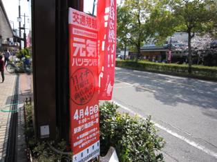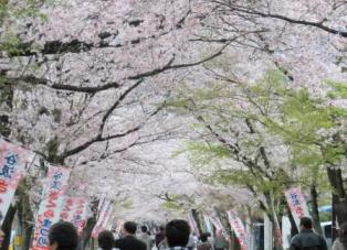 桜の満開宣言があった東京は、大田区馬込文士村。ここは大正末期から昭和初期にかけて多くの文人が住んでいた土地。4月4日(日)には、馬込地区の地元自治会連合会及び商店会連合会主催の「馬込文士村第20回大桜まつり」が開催された。第20回を記念して、岐阜県郡上市明宝の磨墨太鼓が出演した。郡上市明宝と大田区馬込地区とは、1184年の宇治川の戦いで先陣争いをした梶原景季の愛馬「磨墨」の、生誕の地と落命の地(諸説あり)の関係で交流がある。馬込地区には、磨墨を葬ったと云われる磨墨塚があるほか、景季の父の梶原景時の菩提寺とされる万福寺がある。万福寺には名馬磨墨の像があった。大桜まつりでは、このほか郡上踊りも踊られ、花冷えの中、踊りの輪が繰り広げられた。岐阜県東京事務所長(誠)