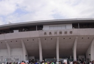 春らしい陽気の4月4日、自転車でFC岐阜の応援に行ってきました!FC岐阜はこのブログで何回か紹介はされていますが、サッカー観戦には気持ちのいい季節ですので、再び取り上げちゃいちゃいます。今回の試合の入場者数は5,133人。昨年の平均入場者数4,300人を超える盛況ぶりでした。FC岐阜は2009年度の「ロイヤリティポイント(サポーターのクラブへの愛着度を示す数字)」が、J1、J2あわせて36チーム中、1位でした。これって結構すごいですよね!今年も1位を目指しましょう!(もちろん試合成績も。。。)さあ、屋台村でおいしいケバブを腹に詰め、いざ観戦席へ!今年もたくさんの企業の方にスポンサーについてもらっています。ありがたいことです。ちなみに、岐阜県もスポンサーとして、広告を出しています。左下の写真では確認しにくいですが、4段目左端に記載されている「家づくりはぎふの木で」。 ※岐阜県産の木材を使って家づくりをされた方に対する助成金が出ます。 詳しくは上記リンク先のホームページをチェック!! ピッチ看板も出してます(右の写真)。この試合から、電光掲示板がカラー映像になりました。選手紹介もカッコよく流れます。でも、次の試合からスタジアム改修のため、ここは使えないんだな。初お目見えですがまた当分お蔵入りです。。。この日は、映画「ダーリンは外国人」とのジョイントデイ。映画館のように予告編が流れました。原作者は岐阜県関市出身とのことです。今回は応援団の中に入って、ジャンプしたり大声出して応援しました。終わるころには応援歌もすっかりマスターです。試合は3対0の完勝!実はコンサドーレ札幌に初勝利らしいです。僕はミーハーなので、敵チームのゴン中山をオペラグラスで見ていて2点目の嶋田選手の素晴らしいシュートを見逃すという失態。。。でも周りに便乗して盛り上がりました!次のホームゲームからは、長良川球技メドウに移っての試合です。狭い分、ピッチに近く、選手と同じ目線で臨場感あふれるプロのサッカーが見られるところは珍しいかと思います。ぜひ応援に行きましょう!P.N 森のくまさん