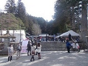 タイトルで気づいた方さすがです! 皆さん本年度もよろしくお願いします。さっそく、平成26年4月3日(木)に開催されました、第63回飛騨生きびな祭りに参加してきました。 そもそも「飛騨生きびな祭」とはどういう祭なのでしょうか?飛騨一之宮観光協会のサイトを見ると、以下のような説明があります。「飛騨地方の雛祭りは、旧暦の3月3日に近い、4月3日にお祝いします。 飛騨一円より選ばれた未婚の女性9人が、お内裏様やお雛様、官女など、きらびやかな生きびな様に 扮して行列を行います。 行列後には、ひな様が身代わりに受けた穢れが神社で祓い清められ、一年の幸せを願います」 (上掲のリンク先より引用) また飛騨高山の旅行観光ガイドのサイトではこのように説明されています。「飛騨生きびな祭は、高山市一之宮神社で開かれます。 飛騨地方では1カ月遅いこの日がひな祭り。 生きびな祭は、養蚕や農業の繁栄と女性の幸福を祈念し、1952年に始まったそうです。 飛騨一円より選ばれた未婚の女性9人が内裏や后、官女などきらびやかな生きびな様に扮し、行列を 行います」 (上掲のリンク先より引用)「生きびな」とはつまり、雛人形に扮した9名の未婚女性が平安装束に身を包んで神社周辺を練り歩くというものです。お内裏様の男雛も、左大臣や右大臣もすべて女性が扮します。そして、ひとしきり巡行を終えた後は、アニメ「氷菓」第22話の劇中にもあったように神社に戻って穢れを祓い清めます。 そんな「飛騨生きびな祭り」に初参加です!(昨年は、アニメ放送後ということと、ヒロイン「千反田える」役の「佐藤聡美」さんを招いたため、雨の平日に2,500人も来た伝説のイベントとなりました)開始前の水無神社 今年のタイムスケージュル10:00 氷菓イベント開始(絵馬殿での各種展示や奉納絵馬の受付など)10:30 ステージにて、「出張!クイズ研究会」イベント開始 ※10時32分飛騨一ノ宮着のJRでおいでの方も参加できるように調整します。12:00 ~13:00 ステージにて、ヒッツFM「市役所からこんにちは」出張生放送13:00 ~14:00 生きびな行列巡幸15:00 ステージにて生きびな様紹介・餅まき 今年のメインは、「氷菓」ファンのために、旗もち(水無神社の旗)と傘もち(アニメで奉太郎がたのまれた役)を募集!それまでの時間を楽しむための方策として、奉納絵馬の受付、クイズ研究会を実施。 まずは絵馬殿の状況 過去の生きびな祭りの写真紹介コーナーや 今までに発売された氷菓グッズの展示 奉納絵馬について 展示状況(暗いなー) エントリー外の皆さん エントリーされた方 エントリーされなかった、皆さんのなかには漫画版のタスクオーナーさんや、大手サークルのメンバーも! イベント中はタスクオーナーさんのはグッズ展示のところに別にしておりました。絵馬の大きな写真を見たい方はこちらへhttp://hyouka.hida-ch.com/ この日から発売した「氷菓酒」 昨年の「カンヤ祭」でも展示があった「痛(スキー)板」 新しいパッケージとなった飛騨牛カレーの販売なんかもありました。 さて私は取材の傍ら、「出張!クイズ研究会」の音響(予選中のみ)を担当することになり、 予選中の写真はこんな感じでしか取れませんでした。 氷菓に対する熱い思いが多いファンのため決勝はなんとくじ引き 決勝にでた4名 クイズが終わると地元FM局の生中継(カンヤ祭では放送部)(私はこの間に昼食) <その2へ続く> PN 隊長(神山高校写真部、神山高校文化祭実行委員会)