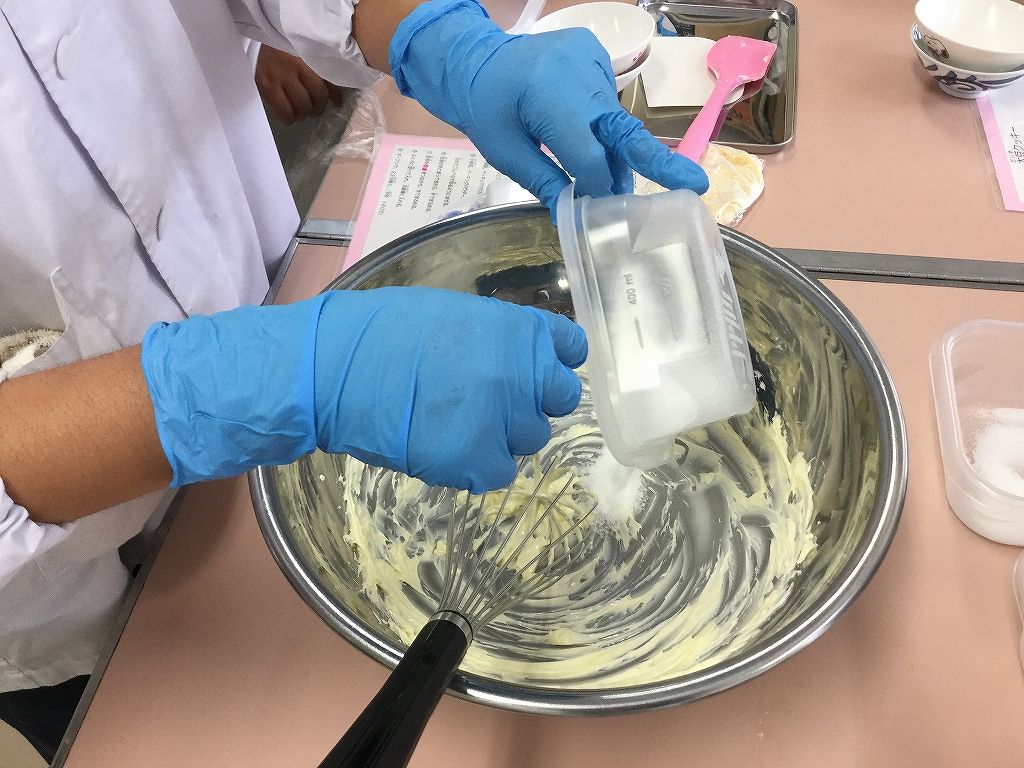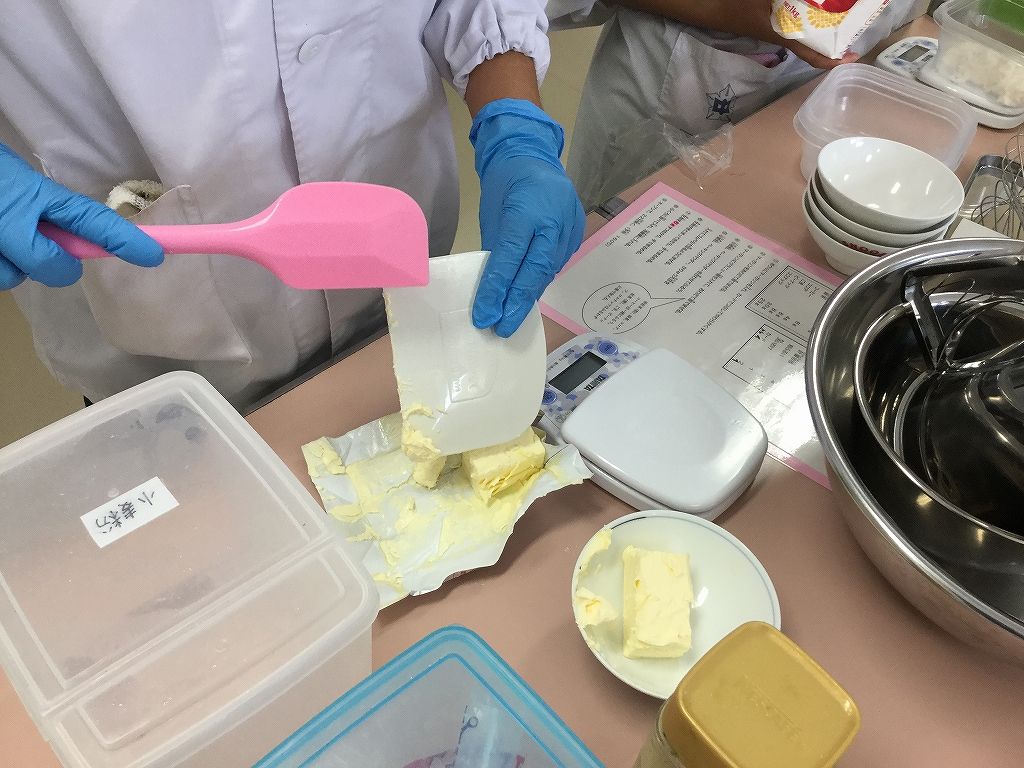 また、毎回同じ品質のクッキーを製造できるよう、計量はどの生徒もとても慎重に行っています。