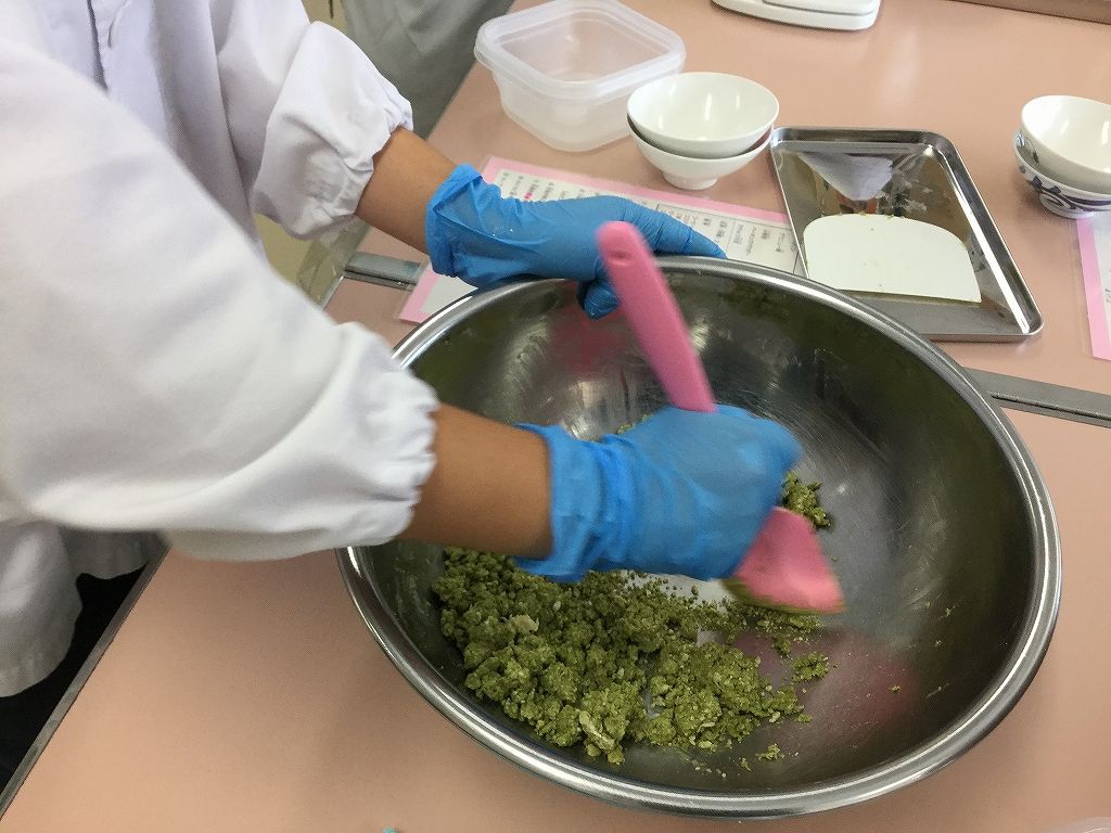 大方の生地が出来上がったところで今回は緑色の粉が入りました