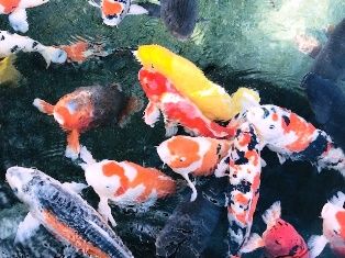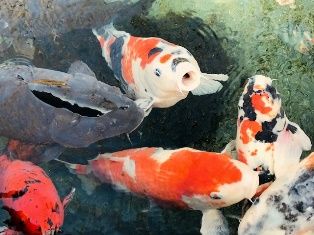 ものすごい数のコイしかもめちゃくちゃでかい近い