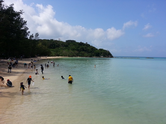 こんにちは今日の「石垣島・八重山!日替わりチャンプルーブログ」、担当は【石垣市観光協会青年部】です昨日は、「日本最南端!八重山の海びらき2013」が開催されました朝も早いイベントでしたが、家族連れや観光客などたくさんの方々が会場の石垣市川平にある底地ビーチを訪れ、早い夏の到来を体感していましたまず、川平の神司3人が1年間の海の安全を祈願してイベントがスタートこの時間帯は天気が安定せず、雲がたちこめときどき小雨がぱらついたりしていました続いて、川平小中学校の生徒さん達が「ついにこの季節がやってきた。太陽輝く石垣島底地ビーチより、今ここに日本最南端!八重山の海びらきを宣言します」と高らかに海びらき宣言を行いました次に、ウミガメの放流が行われましたそして、テープカットみんな一斉に海へ入り、泳いだり、水を掛け合ったりと思い思いに楽しんでいましたテープカットで使う、テープはこれ。南国らしいイメージのテープでしょ初泳ぎをした子どもたちには、それを証明する「初泳ぎの証」が配られましたビーチでは、エイサーやフラダンスなどが行われ会場を盛り上げていただきましたこのころには、時折晴れ間ものぞき気温も徐々に上昇してきて運営側もひと安心舞台では第34代のミス八重山も発表され、会場の注目を集めていました 朝の天気が嘘のように、天気も回復。時間を追うごとに夏らしい陽気に変わり、今年の海びらきも盛会でした
