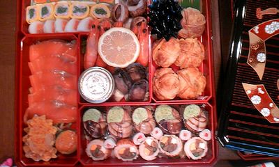 明けましておめでとうございます。 新年早々、食べすぎです。毎年、年末から年始にかけてはどこかに出かけるのですが、今年は何年ぶりか忘れるぐらい久しぶりに自宅で正月を迎えました。なので、特段することもなく、家で寝正月。することといえば、食べるか飲むか。自宅で迎える正月、ということでお重のお節を頼んでみました。百貨店のカタログで選んだのですが、目移りするほどの種類があり、選定作業は困難を極めました。(そんな大げさなものではありませんが)まだカタログには吉兆のお重の写真もありましたね…さすがに線で消してありましたけど。子どもがいる関係で、どうしても洋風中心のものになってしまいます。で、今回頼んだのはこんな感じ。お節というよりは、酒の肴オンパレード、という感じ。当然、やれビールだ、やれ日本酒だ、やれ焼酎だ…今年も食べ飲みの1年になりそうです。今年もよろしくお願いします。