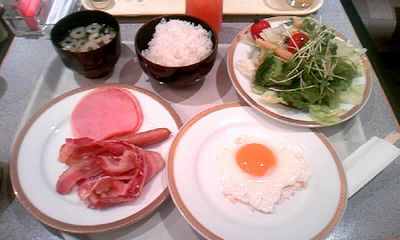 先日、ホテルに泊まった翌朝。朝ごはんはバイキング。やめときゃいいのに貧乏性が‥ここには写ってませんが、あとジュースと納豆、焼き魚、ヨーグルト、果物、コーヒー。取るだけ取って残す、なんてことはしませんが、ついつい食べてしまう‥貧乏性ですな。この分、当然昼は軽くなった、かどうかは定かではありません。