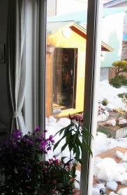 昨日積もり始めた雪一晩中、降り続けたらしく今朝外を見たらすっかり冬景色融けた分、また積もった感じ毎年、こうして行きつ戻りつつそのうち必ず春は来ると重々承知の上、ですが。。もうそろそろいいかなーと洗って仕舞ったばかりの冬用の厚手のジャンバー、オーバーズボン...杜歩きするのに渋々出してきましたこの雪じゃあと厚手の手袋とイヤーマフとネックウォーマーと、トレッキングシューズ も?あ~めんどくさ窓の外ではまた雪が... 今朝、庭に珍客▲ カワラヒワ御一行 この雪でエサ探しも 大変なことでしょう
