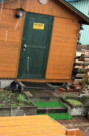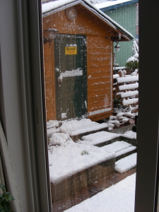今朝7時の日差しでも午後には雪の予報。。▲ 8時頃、出勤前 この頃はまだ雨仕事中、時々外を見てると雨になったり霙になったり時に止んだり目まぐるしく刻々と変化☂午後、仕事を終え外に出ると霙とともにものすごい風帰宅してからも気になる空模様青空が見えても雨混じりの風、時折細かい雪▲ 小屋の前にも うっすらと..▲ 雪のつぶつぶ5時前、と日暮れが早く写真は撮ってませんが今、外に出ると雪景色いつのまにか積もり始めていました