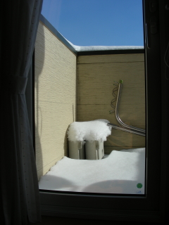 ついに降り始めた雪☃湿った雪が朝になっても降り続いていて結構積もりました▲ 階段の窓から▲ バルコニー▲ 11時、やっと 止みました▲ 日差しがあるのに 外は冷たい北風~~~~"Qo でも根雪になるには もっと気温が下がり もっと積もってから 本格的な冬は まだ先のこと。。゜。°。°。°。°。゜。°。°。°。°゜。°。°。°。°。゜。°。 タイヤ交換は昨日のうちに。例によって気づいたら仕上がってました(笑)あーよかったーまずはひと安心