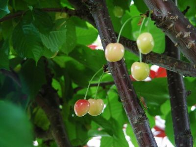 ▲ 色づいてきたサクランボ
