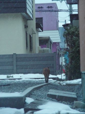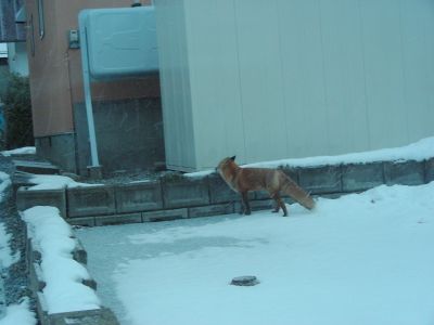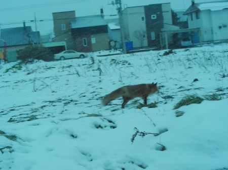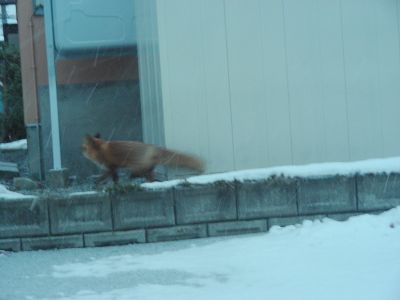 こんな住宅街にキツネが現れるのねー