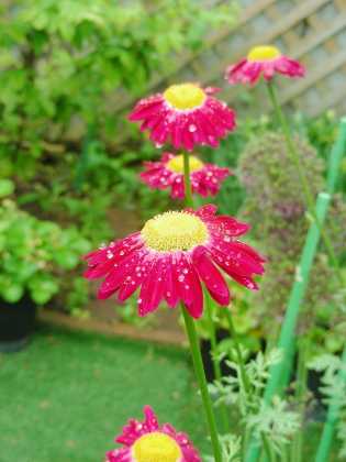 雨に濡れた花たちは
