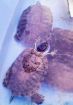 人様からお預かりしていた商工会費を届けにいき、ようやく片付きました~写真屋さんの店頭にいる【みどり亀】です。数年前、お祭りで買ってきたのが、ここまで大きくなったのだそうです。17・8センチ位あります。縞模様が相当気持ち悪いのですが、小さな鼻の穴を見せてこちらを見ている姿は、それはそれで可愛かったので、、、携帯を向けてみました。そしたら、危険を感じたらしく、水にもぐって移動し、あっちを向いてしまいました。感知する能力大なんですね!亀に『チュッ!チュッ!チュッ!』っと呼びかける自分は、どうかな~と思いつつも、動物には大体こうしてしまいます。。月末で、何かと忙しい一日でした。明日も何かと・・・なら、早く寝ないと!歩くのだから!晴れてたら~・・