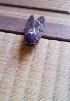 昨夜、仏間に入って行った私の顔にぶつかって来たセミは。あの後、照明の上で、こっちを見ていました。可愛い目だった(?)ので、まあ許しました。今朝、照明の上を見たら既に居なく、「ああ~何処かへ飛んで行ったのね!」と思ったら、部屋の隅にひっくり返っていたんですよ~!で、羽を摘んでみたんです。そしたら・・・『ジジ~~~~~!!』って私は敵ではありません。こんな構えで、こっちを見ています。セミって、何日命があったのかしら?・・・たしか短い命。セミにも意地ってものがありますよね。。お義母さんがこの夏言ってました。『私にも意地ってモノがある!!』って。私は、意地張るのは、たまに(しょっちゅう?)旦那にだけですが。。