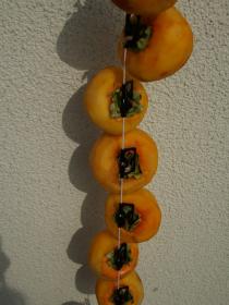 冬型だそうです。ゴミだしに外へ出たら、確かに気配を感じます。今年は、最初っから、ドカンと降ってもらうのも良いと思うのですが、いかがですか?いろいろ事情はお有りでしょうが・・・。雪不足と言われ続けたここ数年。急に降られて困った~!って言う年ががあってもいいと思うんですよ。偶には、スキー場関係者の方々を喜ばせてあげたい そういえば、実家の町に年に一度歌謡ショーが来る文化の日、雪が舞った時がありました・・・なつかし~~年をとってめっきりマメになった同居人(?)が自主的に干し柿作りをしてくれました。昨年は収穫が遅くて、干した先から落ちていました。・・・学習能力は育っているみたいですね私は、甘柿の方が好きです。今年はしっかり甘いと良いのですが・・・キーゥイが沢山成っていますが・・・これが美味しかった年は無く・・・採る気がしません。・・・いったい、いつ収穫するのがいいのでしょう~~??