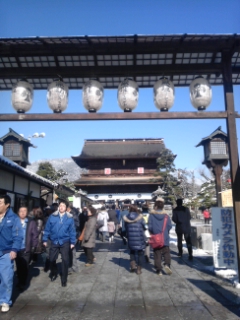 昨日は、仕事帰り、善光寺参りを思いつき回りました。身につけていたものは、、、仕事用黒ジャンパー&ベージュパンツ&黒レッグウオーマー(今年大活躍の優れもの)&黒のショート前掛け(お尻を上手いこと隠す優れもの)&ヒートテックの黒手袋&モコモコのベージュマフラー・・・黒とベージュづくしでしたいつも車を止めさせて頂く呉服屋さんに寄り、話し、笑い、以前から欲しいと思っていた小物の注文も出来て おびんずる様が布で巻かれ、別の所に移されていました。なにかあるのか?あったのか・・・写真はどうかと思ったのですが、すみません一枚昨夜【おびんずる回し】が堂内で行われたのだということを、先程ニュースで知りました。練炭の火に線香をつけん!としている男性仕様の手は、他人様のです。どうぞご一緒に!と私が言いましてね。念の為。。?私、仕事途中ですからそれより、ついでの初詣って、、、どうなんでしょうねぇ。。。。?それでも、初詣を済ませると気持ちが良く^^!甘酒小屋を探したら、其処は自動販売機コーナーとなっており、残念。。お願いしたことは特に無く・・・ただただ手を合わせたのみ。毎朝自宅で手を合わせる時は決まった文言。別宅で手を合わせる時はただただ手を合わせる。お天気で気持ちの良い初詣が出来ました。甘酒はしっかり飲み、義母へのお土産は、【破魔矢】と味噌屋さんの【おこげ煎餅】でした。
