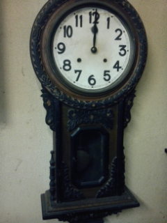 昨日、時計屋さんへ、修理して貰った時計を取りに行きました。写真の時計ではありませんよ!(笑)この時計は、多分100年位前のものだそうです。修理に出した人が、引き取りに来ないのだと。。なんと、5年間も。。。。ひきとり手が来ない、帰れない時計が、ひっそり壁に掛かっていたのです。回りが木彫りで、なんとも・・・いい感じでしたぁ。私は頼んでいないのに、おじさん(年齢不詳っぽい!)が振り子を付け、扉を閉じ、ネジを回してくれました。良い音が12回響きました・・・・『これ、私に売って下さい!』 とは言いませんでしたよっ!(笑)5年間取りに来なかった持ち主が、どこかに居らっしゃる。。。。質屋さんなら、どれ位経ったら流れるのでしょうか~?経験ないので、ワカリマセンが~。。時間の流れが速いと言えばよいのか、遅いと言えばよいのか、、、?時間のポケットみたいな時計屋さんで、私はまた油売り~・・大瓶2本の注文だったのよ昔の商売屋さんは、商売で返す。。。。 これ原則!今の若いもんは!!?外から見て、やっているのか、やっていないのか?判らないところが、、、どこかの酒屋さんとそっくりで~おじい~さんが生まれた朝に、買って~きた時計さ~~~いつまであそこに掛かっているのだろう。。。思い出したら、覗いてみましょうか。。。(笑)あのおじさんが居なくなったら、あの時計は・・・私が引き取りたいと言ったら・・・? 里子じゃないけど~~^^!?