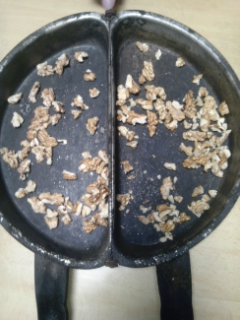 【ほうろく】で胡桃を炒りました。昨秋、2ネット(小布施産)頂いてあった胡桃を、義母が全部割ってくれました。。(お疲れ~~!!)この【ほうろく】は、義母が生まれ育った野尻湖畔で、外国人がキャンプをして忘れて行ったものだそうです。それを義母が持ち帰り、嫁入りでこの地に持ち込み、60年近くが経過している・・片方を蓋にして火に掛け、そのままひっくり返せるという重宝なもの。中の空洞がモノを言います。子供の頃、人をコレで例えるのを聞いたことがありましたわ。^^!??惣領の甚六と言うのも良く聞きましたが、、、これについては、なんとも長男さんが、周りに沢山いらっしゃいますからね~・・炒った胡桃で作ったのは・・・【小松菜の胡桃和え】。脂肪分タップリの食べ物が体内に入ると、それだけで寒い時季をなんとか乗り切れる様な気になるのも、年をとった証拠ですねこの【ほうろく】・・・・真っ黒で汚い調理器具。3年に1回お目見えするかどうかですが、まだ捨てられません。。基本、義母の目が黒いうちは、うっかりモノは捨てられませんから~ストレス解消の為、突然スイッチが入り、気づかれずに捨てられる物を、物色することがありますそれは、時にはヒヤヒヤ、時には刺激的なことであります~~(爆)さ~て!これで焼き芋は出来るのでしょうか~?・・・義母に聞いてみましょうなんとかしてくれ~!っと、サツマイモが出番を待っていますからね