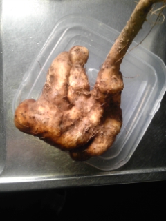 昨秋、月に一度立ち寄る無人の野菜販売所で100円で買ってあった自然薯(じねんじょ)。昨夜、ようやく【芋汁】にしました。(写真は半分になったブツ)自然薯は、普通の長いもとは全く違います。凄~く濃い~芋です。【滋養強壮】に良いことは、この私も知っています。。コブコブの皮を剥くのが大変なだけね^^!それは義母の仕事!!おろし金ですりおろし、すり鉢で更にすり、出し汁(私はいつも煮干し)に調味して、玉子と一緒に混ぜるだけ。普通の長いもも混ぜました。この私にも出来ますよ(ここでバラしておきますが、私は片手で玉子は割れません。。それがなにか~?) はい!出来ちゃった『芋汁があれば、あとはなんにも要らないよ!とにかくご飯が沢山あれば良い』と言う義母・・・それは~、、、大昔の~、、、大家族の晩御飯でしょうが!キッパリ心で。。【酒のつまみ】ってものが無くて、どうやって家人(貴方の息子)の口封じができましょうか~~~???”酒の肴に芋汁をお茶の様に飲むと、ちゅうぶ(今でいうところの脳疾患)になる””弱った年寄りには食べさせてはいけない(強過ぎるから)” このふたつ、昔からの言い伝えだそうです。笑わせていただきましたああ~~、お義母様にお願いです!(日々私を)すこ~し笑わせて。なが~く笑わせて。 そうしたら、あなたを好きになれるかもしれません。。さて、どうかな??(笑)取りあえず、義母のご飯の上に、『もういいよ~!』と言われても、何回も芋汁をかけた私でした。。