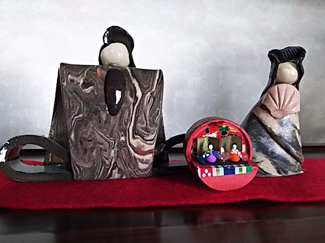 2年近くも同じ軸を掛けておりました。【酒】の1文字。崩した字がなかなかではありましたが、、この時季にぴったりの軸は無いものかと、義父が遺した軸が入っている天袋の中を探してみましたが、見つかりません。箱に【宮本武蔵】と書かれている軸はどんなものかな?と思いましたが、、一旦出して御覧なさい あとの始末が大変で、しかし、一度は全て目を通した方が良かろう~?私の他に誰がやる コレガマタデル!(笑)結局、娘が生まれたお祝いに頂いてあった【紫式部】を掛けました。これならお雛様を置くことも出来ましょう~お義父さん、季節の軸には興味が無かったようで・・残念です。。世の中のニュースはすっかり寅ちゃんから正夫くんへと変わりましたね。?娘はだんだん【瓢箪とっくり】へと変身しています。 コンナコトトテモイエナイワヨ..(笑)