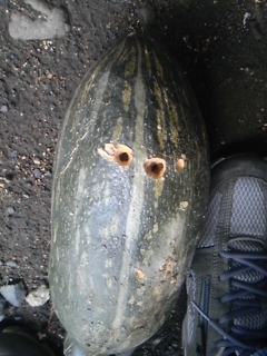 こんなカボチャが採れたらしく、唯、黙って置かれていました。