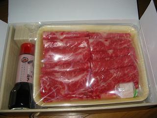 フフフ風邪で新年を迎えたけどひょっとして!?今日は空手初稽古だった………けど仕事関係の『新年会』に出席後ろ髪を引かれつつ 会場入り車で行ったのでアルコ-ルはタブ-!いつもは 電車で出席してガバガバ飲んでたけどウ-ロン茶で我慢する!待ちに待った 「抽選会」!ココは肉の店賞品の上位は 肉関係ばかり!箱に入ってるのは 「ニク!」あとは パン ソ-セ-ジ関係箱が次々 取られていくラスト2個!やばい! パンはいやや!やった-! ヤッタ-!俺や! オレ!ニクニクニクニク!!!! 宮崎牛 すきやき!!去年は ハンバ-グやったような?今年は すきやき用 肉!いい年になるような気がする……………かも?