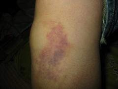 とある パ-ト先イタリアンレストランで転けた  ̄m ̄) ウププッそれは 1週間ぐらい前ひどいことになってる………( ̄Д ̄;;けっして “DV”とちゃうでぇ~蹴られてるのは私ですから……… 写真では 膝に見えるけど膝下3cmぐらい なんか 真ん中だけ水がたまってるみたいプニプニしてるその周りがアザになってる………病院いけよ…………(-。-;)