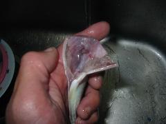 先日のアジの大漁どうしようか悩んでましたで出した答えは “南蛮漬け” では 行程をどうぞ流水でヌメリを取って 横の固い部分(ぜいご)をとり腹を開いて内臓だします頭が嫌いなんで カットしました………(一。一;;それを塩水につけておきますその間に漬け汁を作ります長ネギ 人参 生姜 を千切りお酢 醤油 酒 みりん 水 赤唐辛子を混ぜておきます量が多いのは 大量のアジやから………水気を拭き取り 片栗粉まぶします油で揚げます熱いうちに 漬け汁に漬けますタッパに入れて 日持ちします当日より次の日 また次の日と味がしみ込んでいき美味しいです 巨大魚『ボラ』やけど質問があったのでお答えします ボラです刺身 塩焼き 吸い物 鍋 が美味しいです刺身です幽門という部位です 爺さんは“ヘソ”と呼んでますかなりの珍味らしいのですがオレは食べません高級珍味“からすみ”です値段見てビックリしますオレは貧乏なんで 食べたことありません