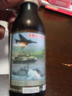 先日の旅行は無事帰宅2日目に行った“かがみはら 航空宇宙博物館”でこんなモノ見つけましたここは“航空自衛隊”の基地に隣接してて自衛隊用の栄養ドリンク戦闘機 戦車 自衛艦が印刷されてて なんか効きそう“元気バッチリ”って書いてるし………そしてこれ“炎の大作戦2” また 陸海空の写真………饅頭なんやけどね自衛隊名物 自衛隊限定販売ッて書いてるでもこの饅頭ただの饅頭じゃありまへん『演習弾12発中 2発実弾がはいってます!!”饅頭12個の中に 唐辛子が入ってる饅頭が2個あるまぁ ロシアンル-レット饅頭仕様みたいなもんこれは 家ではでけへん道場に持っていき稽古後 道場生と輪になって演習開始………………………………………………次々と胃の中に入っていく演習弾残り3人S月とOさんとオレS月 口撃( ̄~; ̄) ムシャムシャ………( ̄ー ̄;)ニ、ニヤリ セ-フ(◎0◎;) げ じゃ オレとOさん “当たり”Oさん口撃( ̄~; ̄) ムシャムシャ………「あっ! 入ってる……けどそんなに きつくない」………残ったのは オレ“そんなに 大量やなかったら食べれるな”と思ってたらS月に異変遅れて着弾したようや刺激物に弱いS月君 酷い苦しみよう寝るまで 尾を引いて“シュン太郎”になってたよ このお土産刺激物が弱い方には お勧めできまへん特に子供にはね……………