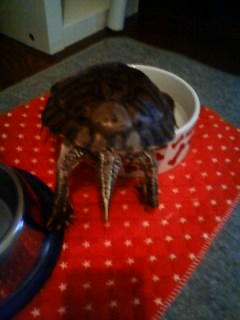 昨日帰宅したらカメと水槽とエサがなくなってました・・・。連れ去ったようです。でも元々の大きい水槽は放置されてます・・・。私の買ったきれいな水槽を持ち出したみたいです。自分のところでまた飼うようになったら水槽に入れると言っていたのが気がかりです。ムサシが、水槽に入れられるのどれだけキライなのか知ってると思うのですが・・・。動物好き・・・・ですよね・・・う~ん。。。幸せになってくれ、ムサシ。