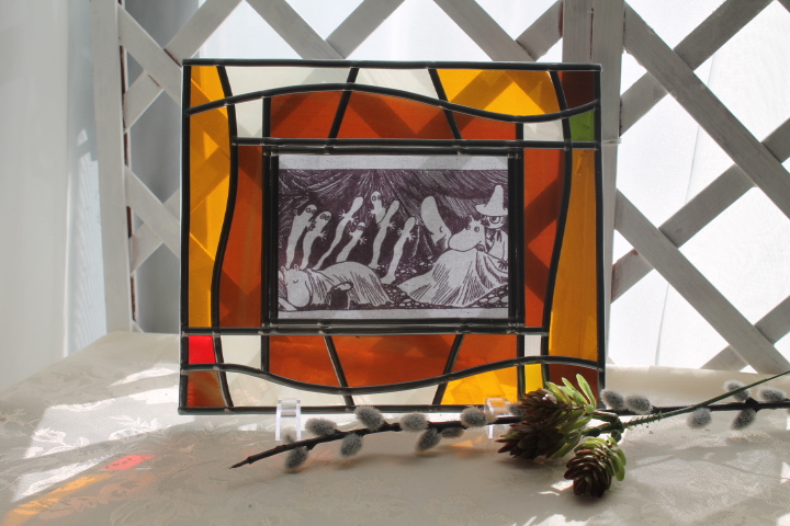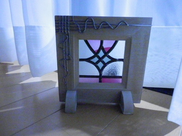 ご訪問有難うございます。昨日受講しましたアンティークスタンド(小)です。今回は額の回りに2ミリのリード線を使って模様を製作する作業を教えて頂きました。私は一番シンプルな模様を選んで・・・。他はキットなのでフィルムもセットになっていますがどうも気に入らず何度もやり直し。(私のフィルムカットの仕方が悪かったのかも)1 キットのフィルムをつかって。2 ビトレールを塗ってみた。3 最後は自前のお花模様のフィルムと薄いピンクを2枚重ねしてみるこれで満足したことにしましょう。昨日は講師の先生のリード線捌きに圧倒され脱帽でした~。次回はもうひと回り、大きいスタンドをアップします。にほんブログ村ランキングに参加しています。応援お願いします。