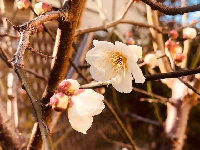昨日は暖かく、公園や庭の梅の花が咲いてきました。