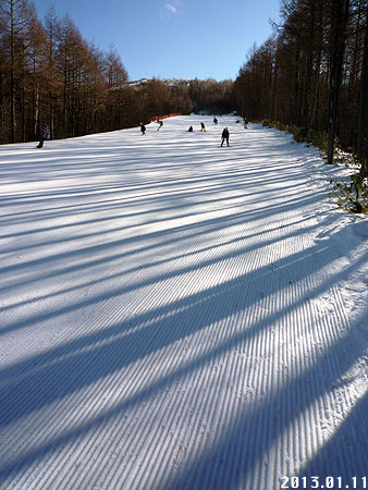 樹木の影で縞模様になってたゲレンデです。週替わりプロフィール欄利用のギャラリー今日からの1週間はコレです。先週と同じく年末の初滑りの時の写真から。