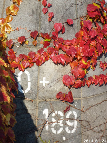 散歩途中で見つけた、蔦が伸びてた壁です。週替わりプロフィール欄利用のギャラリー今日からの1週間はコレです。壁のグレーに赤い葉の色が映えますね。