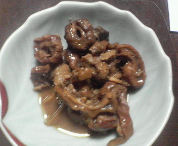 カジキの内臓をもらったので料理しました。カジキは釣り上げたあと鮮度が下がるのですぐに内臓を出してしまいます。なのでこのわたは当然市場に出回るということはありません。地元でもそんなに食べた事ある人いないんじゃないかなあ?これとっても美味しいんですよ。でも下処理が大変なんです。内臓なので分泌物が凄いんです。それを手で摘まんで丁寧に出してきれいにするんです。これだけで半日位かかってしまいます。この寒い中半日水に手を突っ込んで作業するので根気がいります。それを煮込んでいきます。魚版のモツ煮です。下は手作り塩辛です。酒盗のカジキバージョンですね。昔の漁師さんはこれを作ったら瓶に入れてトラックの荷台に乗せておくんだそうです。適当にコロコロかき混ぜられ美味しく仕上がるんだとか…ホントかどうか分かりませんが(笑)塩辛はあんまりきれいに掃除しない方が美味しいという人もいます。ウチの奥さんの大好物です。原形の写真です(1月31日の記事)千葉 勝浦 民宿まぐさ