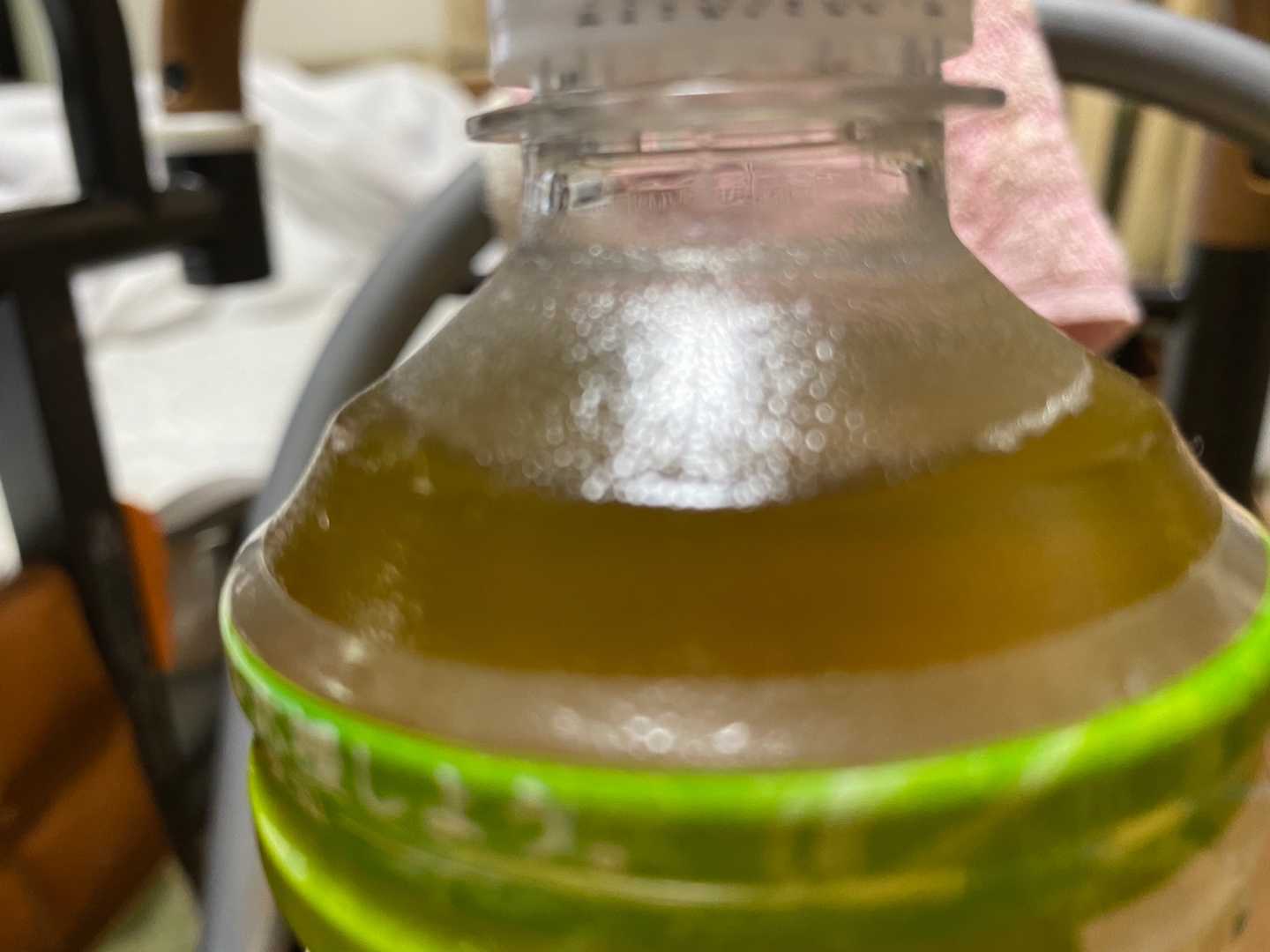 この間から、ずいぶん痰がからむ、じーさん。 誤嚥性肺炎が心配で、受診したけれど、肺のレントゲンも撮り、問題ないとのこと。 いつも注意されるのは、「水分いっぱいとりなさい」。 痰がからむなら、いつもの3割増しでね、と。 しかし。 老人に、水分をとらせるのって難しい。 上を向いてゴクゴクも飲めないし、小さなおちょぼ口で、ちびりちびり。 「水分、とりなよ」といっても、「飲んでる」と。飲んだ気にはなってるらしい。 たったいまも、「ほら、飲んだら!」と渡したお茶のペットボトルを、「おお、飲みたかったんだ」とばかりにすぐ受け取って、喉を鳴らして、ゴク、ゴク、ゴク… え⁉︎ 飲んだのは、たったこれだけ⁉︎ (というか、飲んだの?これ) 夏は水分がわりにスイカとか食べてもらったけど。点滴や、経口補水液以外にも、何かふだん使いできる有効な水分補給の方法が知りたい。 ただ、痰を和らげるには、やはり喉元を通る水分が必要なのかな? まだまだ模索は続く。