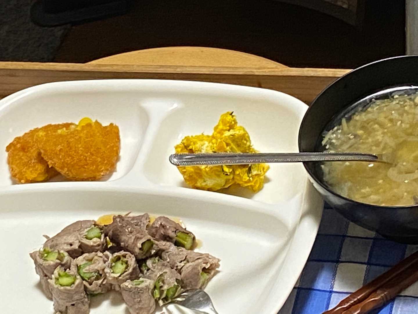 写真は、当日、マンション帰還時の父。(無理やりピースさせた😄) 先日、北海道から取り寄せたアスパラで作った老人用夕食。(でも、やっぱりほとんど噛みきれなかったようだ…)