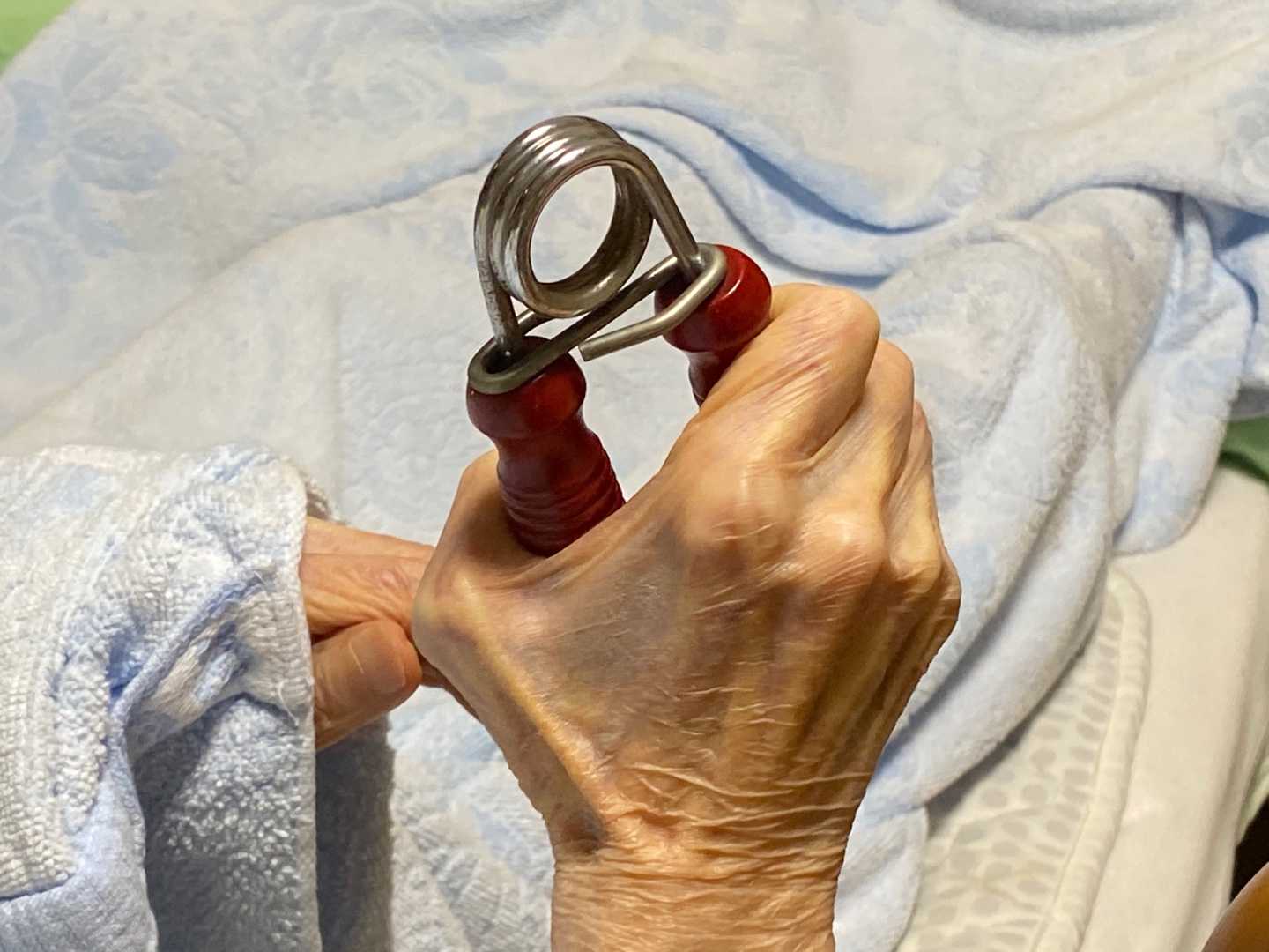 93歳の父ですが、ワクチン2回接種も無事に終え、食欲げっそりなくして急に弱った盛夏も超え、なんとかやっています。 ↑寝る前の手の運動 ↑ いつも座っている椅子から立ち上がるときは、 ベッドの手すりを「孫の手」で引き寄せ、 ↑掴まって、満身の力をこめて立ち上がる。 腕の力がないと、これ無理だなぁ〜と、私は自分の来るべき日の参考にする。 ↑最近、がんばって、本の整理をする父。 父の作業のために、書斎やら廊下の本棚から段ボールに本を入れて、父の前まで運んでくる私たち(母と私)も、それはそれで大変だけど(腰の悪い私は、腰ベルト着用にて、運ぶ)。 仕事で活字にかかわってきた父にとって、本はいのち。 ときにそのことに反発心を覚えたこともあるけれど(特に男兄弟たち)、本には父の人生が詰まっていて、やはりいのちなんだなぁと、思う。 「自分で整理しないと、価値のわからない母と私は処分しちゃうよ!それ不本意なんじゃないの⁉︎」 と鬼ムスメも母も叱咤すること、早何年。 ようやく最近、父本人が重い腰をあげて、本の整理をがんばって進めている。 「このまま置いていかれたら私が大変なんだよぉ!!!」と騒いでいたものの、 いざ父が整理を始めたら始めたで、 きゅんと胸が… 終活する親の姿を見るのは、やはり切ない。 ***** ずいぶん久しぶりの投稿になってしまった! ワクチン接種にあたってのひと騒動を記録しておくはずが、しっかり書き残そうと思うとかなりな長文になり、整理する前に自分が疲れるという…。 その話はまたの投稿として、きょうは日々の姿を投稿しました。