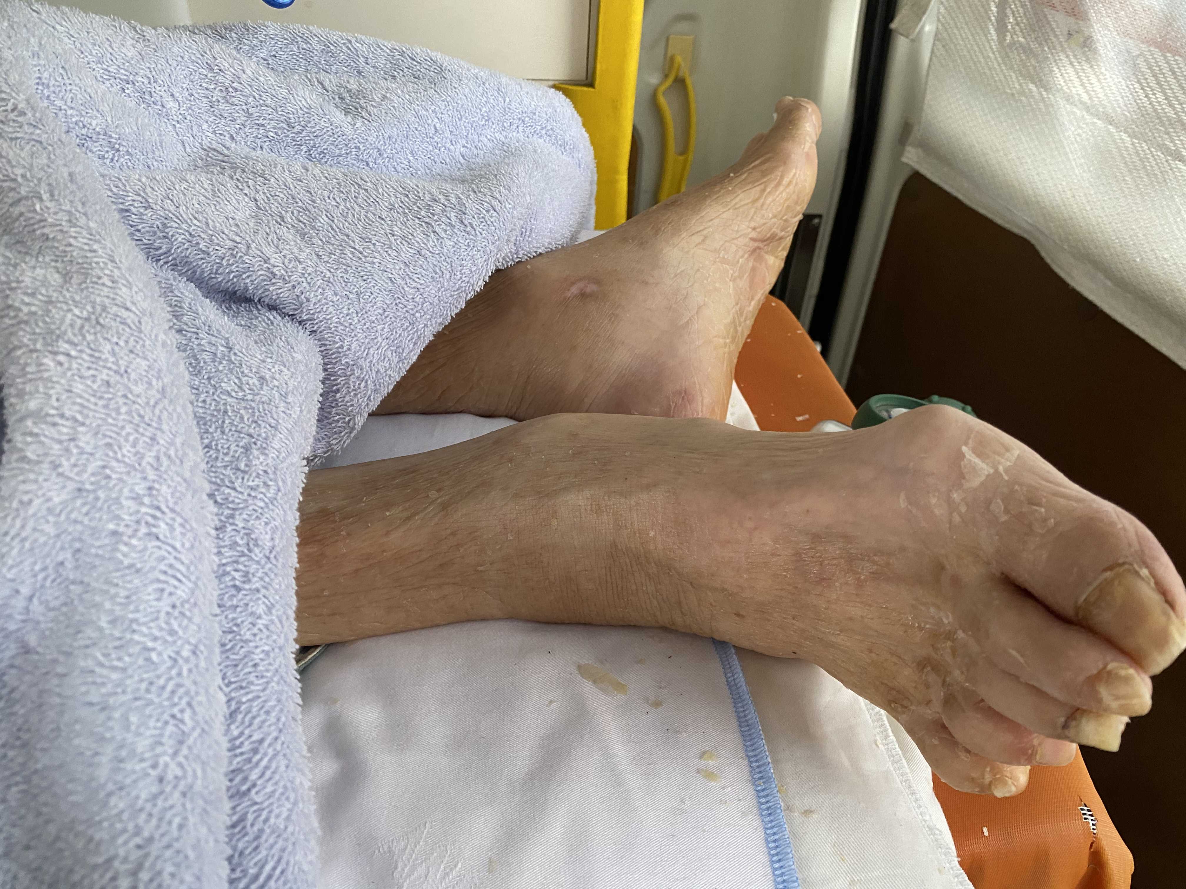 6月2日。父、無事に転院できました。いやぁ…一言でいうと、当日も大変だった。何より、当日私がどうかなったら、話がイチからやり直し⁉︎と思うと、喉すら痛くなれない、その緊張感。(母も兄も、誰も同行してくれないから)前日は、その緊張感と、準備で、寝るのが4時半すぎ。睡眠時間1時間半で、でも何とかなって、本当にほっとしている。準備というのは、父に、久しぶりに会えて、そして、またいつ会えるかわからないから、父に伝えたいこと、してあげたいことを、思いつくままに準備したのだ。思いつく限りは…できたかなぁ。2ヶ月以上ぶりの父は、意外と変わらない感じで、ガリガリではあったけれど、肌ツヤもあるほうだった。身体中、黒ずんで、ガリガリで、生者の面持ちでないかも…と恐れていた予想は、ありがたいことに、外れた。保湿剤をつけて足をさすったり、補聴器をつけてあげて声をかけたり、叔母2人に電話して、父の耳に当てて聞かせたり。行きがけに、民間救急車の方にお願いして、マンションの前も通っていただいた。人工呼吸器なのでストレッチャーで降りるのは危険とのこと、それは諦めたけれど、マンション前で、しばし停まってくださった。車窓のカーテンを開けて「お父さん! マンションだよ!マンションの前に停まってもらったよ!」と耳元で言うと、父の顔がくっと、窓のほうに動いた!(期待のあまり気のせいかと思われそうだけど、あとで同乗の救命士さんもそうおっしゃっていたから、本当に動いたのだ!)「きょうは部屋へは入れないんだけど、ベッドもそのままにしてあるからね。元気になって戻ってきてよ」「いつも歩いた道だよ。あの黄色い花がいま咲いてるよ。また一緒に歩こう」話しかけると、父の目に涙がたまった。(そのあと、事あるごとに涙もたまったのだけれど、これも、父はわかっているのでは⁉︎伝わってるよね⁉︎とほぼ確信した理由の一つ)(↑ 保湿剤をつけて足をマッサージすると、皮膚がボロボロ落ちた。(シーツにいっぱい)爪も伸び放題だけど、急性期病院だからしかたない。でも、入院前にじくじくしていた足の傷はきれいになっていた!)民間救急車で、病院の救命科の医師と、救命士さんと、私。高速も使い、渋滞もしたので、1時間半。意外と車が揺れて心配したけれど、無事に転院できて、本当に感謝だ。転院後は容態が急変しやすいと聞いていたので(実際、知り合いの体験談からも)、ドキドキしていたけれど、3日たったが、いまのところ大丈夫そう。父本人の体力と、民間救急車の方々と医師と。転院に向けて動いてくださったすべての方と。受け入れてくださった病院と。父を救けてここまで診てくださった病院と。そして、神様。仏様。当日、雷雨予報がズレて、晴れてくれたお天気。すべてに、すべてに、感謝。転院の道中は、あれもこれもやり、さまざまなことを感じ、とても密な時間を過ごした。大切な大切な、1時間半。その1時間半のことは、また改めて書き留めたいと思う。