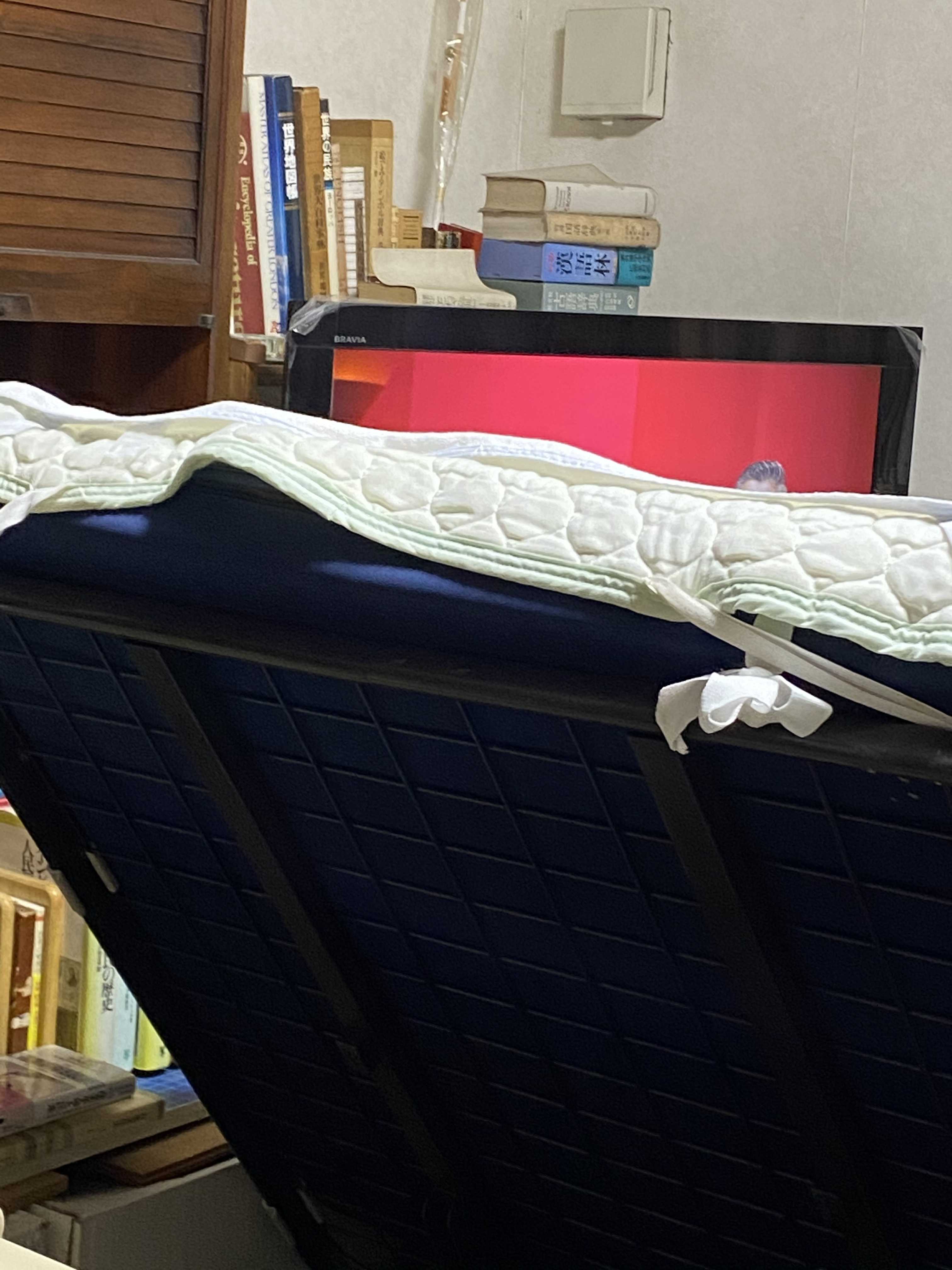 昨夜。今週も一週間、終わったぁ〜✨と、(在宅勤務ながらいろいろ片付けて)夜10時から、遅い夜ご飯を食べながら、ドラマの最終回を観る。あぁ、至福のとき✨…と思いきや。ちょうど父が寝る前の準備を始め、介護ベッドの頭を上げる。TVが、み、見えない…😭(赤いのがTV画面)(介護状態になる前から、父のベッドはリビングのこの一等地?に置いてあり、そもそもそれが問題だったのだが…。父母2人で住んでいたので、私も、2人がいいなら…と口出しせず。この件はまた改めて。)しかたないので、ダイニングチェアから立ち上がり、背をぐーっと伸ばして、お行儀悪いけれど、ご飯もぐもぐしながら、立ちながらTVを観る。ドラマ最終回だから、早く観たいの…。そのあと、ほろ酔いで、自分の部屋でまったり、うとうと座椅子で眠りかけ。(よろしくないことだけど、この座椅子でちょっとうたた寝、も至福のとき✨)しばらくすると…おぉ〜〜いおぉ〜〜い〇〇(私の名前)に頼みたい〜〜〇〇(私の名前)に頼みたい〜〜…うとうと気持ちよくうたた寝中、意識が(あ、じーさんが呼んでる)と気づいても、軽く無視…そんなに切羽詰まった声でもないので、しばし様子見(というか、うたた寝から起きたくない)。おぉ〜〜いおぉ〜〜い〇〇(私の名前)〜〜〇〇(私の名前)〜〜…10分くらい放ったらかしたでしょうか😅起き上がって様子を見に行くと。一人で頑張ってトイレに行ったものの、オムツが上げられず、この状態でベッドまで戻ってきて、私を呼んでいた。(いま考えると、この状態ですりすり歩いて来るって、転倒の危険大…危なかった…)トイレでトントントントンといつも父は母を呼ぶのだけれど、母も寝ていたか(私のように放っていたか?)、反応がなかったのだろう。いま考えると、じーさんがかわいそうになるけれど、昨夜、この現場を見た私がしたことというと…(もちろんオムツもパジャマも引き上げて、整えたあとにね)「そんなこともできないなら、オムツにおしっこして!」とボードに書いたのだ👹👹👹先週までの入院中、やはりおしっこも大までも、全部オムツにして(させて)いたというのも頭にあった。退院後は、新たに「訪問看護」を週2回お願いして、排便コントロールをして、特に大のオムツ交換の手間をなくす、という話し合いがなされた。だけど…これは1年ほどまえの入院中、本人はトイレに行って大小したいのに、病院側から無理ですと言われ、揉めたことがあった。病院側は、父くらいの状態でトイレまで連れて行くのは危険が伴い、かつ人手もない、とのことで、父に諦めてもらった。そのときは、オムツにおしっこするって、嫌なんだろうな。プライドも傷つくんだろうな。申し訳ないな。家だったら、何とかやってあげられるのに。そんなふうに心を痛めた私。きょうは、小さなイライラがたまって、目の前のお尻丸出し姿に、かわいそうと思うどころか、ムカッときた👹👹👹93歳父、年相応にボケてはきたが、まだ頭はちゃんとしている。その父に投げつけた言葉。頭はっきりしていながら、オムツにおしっこする気持ち。なってみないとわからないのだろうな。ごめん、じーさん…。
