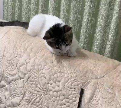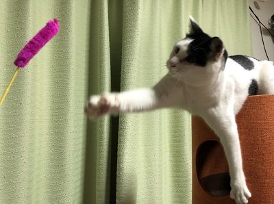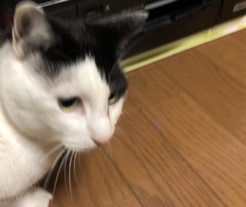 あたしチョビ!メイちゃん、あそんでちょ!おりゃー!あばれちょびテイクオフ!着地成功!ふみはずしまいた!落ちるかとおもいまいた!あぶね!以上、きょうもちょびは元気なのよ。またあそんでちょ!きょうのいちまいこれじゃ手に負えまい