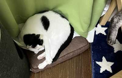 おやじちゃん、こつこついっちきまいた。 (こつこつ=接骨院)こつこつ先生にひさしぶりんりんにお会いしまいた。こつこつ先生はおやじちゃんの柔道の先生。ひよわだったおやじちゃんを鍛えてくれた恩人でありまいた。腓腹筋部分断裂、いわゆる肉離れといわれまいた。じじいなんだからアップは入念にやりたまい!と言われまいた。先生ありがとうございまいた。早く走れるようにしっかりんりん治すしかあるまい。うんめもん食えば早く治るのではあるまいか。きょうのいちまいおやじちゃんかわいそうなので一緒にねんねしてあげまいた。でも、あつくるしいので5分で逃げまいた。