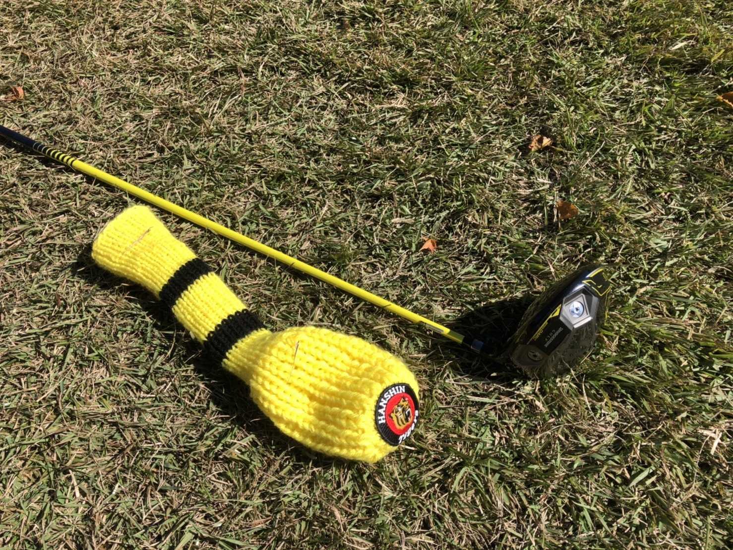 ヘッドカバーはおやじちゃんの手編みでやんす。