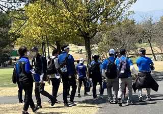青い服のおっさんたち、これ、なっから目立つと思いまいた。