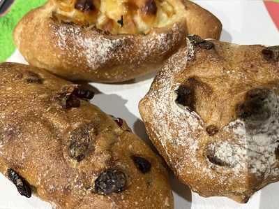 となり町のおなじみのパン屋さん、たくさんゲットしまいた。