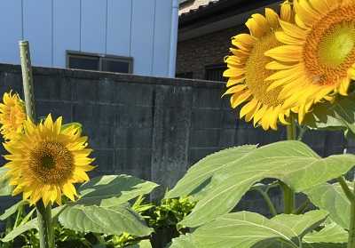 勝手にはいてきたひまわりさんたち、次々さきほこりまいこ。