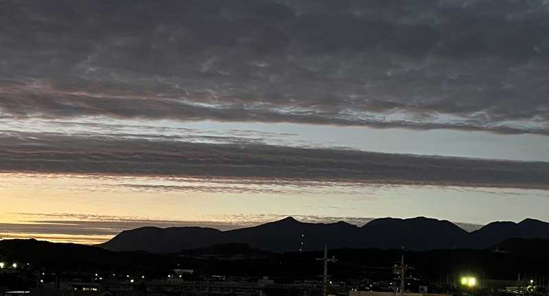 おふくろちゃん、かいっちくるまいに、夕焼けこやけの写真を送ってくれまいた。