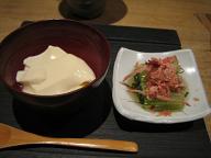 あちこちのサイトで見つけて、一度行きたいと思っていたお店でした。期待したとおりのよいお店でした。お店に入ってちょっと驚くのは、カウンターがぐるっと270度あって、真ん中の厨房を囲んでいるのです。お店の人が何をやっているかを見ながら、食べられるのです。緊張するでしょうねえ。入るとすぐ「○○さまですね」と言ってもらえる。コートもとってくれて、こういう基本ができてるお店が少ないんですよね。アラカルトでいただきました。まずはお通しの水菜のおひたしとと寄席豆腐。器も色もきれいですね。戻りかつおのたたきです。にんにくと一緒に食べるのがこんなにおいしいとは! しょうがより好きでした。玉子焼きです。本当は4切れありました。ふわふわでやさしい味。「下味がついてますので、何もつけずにどうぞ」といわれましたが、さすがに薄くて、大根おろしにちょっとおしょうゆを足すと、抜群でした。黒豚しゅうまい。これはでかかったです。普通の3つ分くらい? なので、中に肉汁いっぱい。皮も細く切ってあって食べやすいです。白子のレタス包み蒸し。これは中がクリーミーな白子で、周りがしゃきしゃき感を残したレタス。食感がおもしろいです。創作料理? というのかな。大成功ですね。好きな味です。しめの焼き豚小丼とかぶのお味噌汁。デザートがなくて、黒豆の砂糖まぶしとお茶でしたが、この黒豆が素朴でおいしかったです。お酒を4杯飲んで、2人で8700円。働いている方もきちっとしてるし、お客さんの姿が見えなくなるまで送っていただいたり、本当に気持ちのよいお店です。1ヶ月毎にメニューを変えられるそうですから、また行ってみたいです。