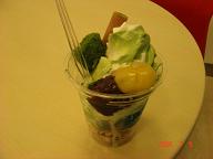 仙台駅で少し時間があったので、構内の「喜久福」というお茶のお菓子のお店で抹茶パフェをいだきました。450円。ソフトクリーム、抹茶カステラ、あずき、抹茶ゼリー、栗がのってました。これは・・・いまいちでした。