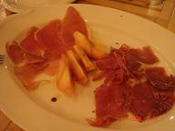 下馬にできて、ずっと気になっていたイタリアン。やっとうかがえました。外見は素朴な感じですが、入ってみるとシャンデリヤがあって、ちょっとエレガントな雰囲気です。池尻の「パレンテシ」の姉妹店なのだそうです。 お店の真ん中にどんと置いてある生ハムを注文。イタリアものと、自家製だそうですが、どちらもいい味です。桃と一緒に食べるとまたすばらしい味ですね。 めかじきのスモークとニョッキのゴルゴンゾーラソース。めかじきのスモーク具合がなんとも言えずいい感じです。ニョッキはねっとり、ソースはこってりの大変好きな味。たまりません。 米沢牛のラグーパスタ。このお店は、いろんなパスタがガラスケースにあって、好きなものを選べるんです。迷いまししたが、並々の幅広麺に。ソースがからんでおいしいです。サルモーネピザは、スモークサーモンとトマトと生クリームのピザ。これもこってりの好きな味。 デザートは、チョコケーキとカッサータとカタラーナ。特にカッサータは、マンゴーがよくあっていて、よかったです。それぞれお酒を1杯、赤ワインを4人で1本とって、1人頭5000円弱。大満足で、星は4つ。☆☆☆☆