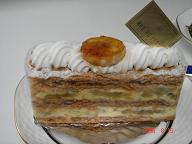 バナナのミルフィーユと桃のショートケーキ。どちらも夏季限定です。ミルフィーユはサックサク。バナナの果肉がねっとり。桃のショートケーキは、ふわふわのスポンジに、甘酸っぱい桃に、軽くて甘みがちょうどいい生クリーム。ああ、なんとおいしいのでしょう。写真はないですが、バッカスという、中にブリュレが入ったチョコムースも食べちゃいました。これも、濃厚ながら軽くて、ぺろりです。